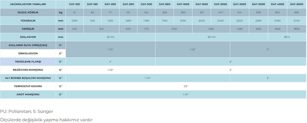 Akümülasyon Tankı ve Elektrikli Boyler ÜAT - ÜAT/E serisi,